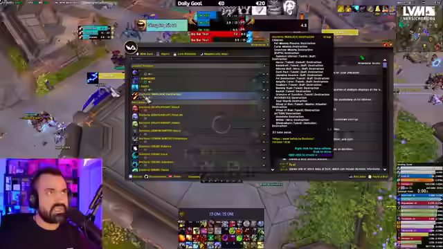 00:08:06Nachdem die technischen Probleme behoben sind, fragt der Streamer den Chat, ob er im Raid Magier oder Hexenmeister spielen soll. Die Entscheidung fällt auf Hexenmeister, woraufhin er sich darauf vorbereitet, Keys für diese Klasse zu farmen. Anschließend beantwortet er Fragen aus dem Chat, unter anderem zu Addons und zur Verfolgung bestimmter Fähigkeiten im Spiel. Es folgt die Planung für Dungeons. Der Streamer sucht Mitspieler für Echo Dome, um bestimmte Ausrüstungsteile zu erhalten. Er diskutiert mit den anderen Spielern, welche Dungeons sie spielen wollen und welche Items sie benötigen. Dabei werden verschiedene Optionen wie Dawnbreaker, Halls of Infusion und Priory genannt. Letztendlich entscheidet man sich für Dorn und Dawnbreaker. Der Streamer skillt auf Hellcaller um, da die Zuschauer ihn im Raid als Warlock sehen wollen. Er erwähnt, dass er sich noch Lava Burst APL genauer ansehen wollte, da er den Verdacht hat, es zu viel zu nutzen.