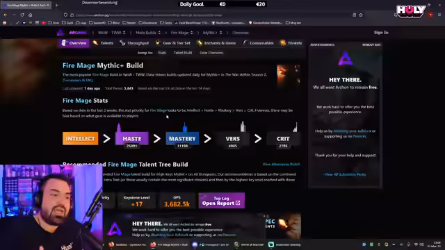 06:09:38Die Prio von Diabeast wird genauer unter die Lupe genommen, da der Streamer glaubt, sie zu unterschätzen. Er verweist auf seine alten Vigau-Guides aus Dragonfly Season 1, wo Diabeast eine niedrigere Prio hatte. Es wird untersucht, ob sich die Prio durch Talente und Hero-Talente geändert hat. Zunächst werden jedoch die Warning-Einstellungen überprüft und angepasst. Es wird festgestellt, dass Diabeast im Single Target eine extrem hohe Prio hat, wenn Hans Monsters Call geskillt ist, ansonsten die niedrigste. Es wird erklärt, dass Mythic Items nur für die Embellishments gecraftet werden sollen und ansonsten Mythic-Track-Items aufgewertet werden sollen. Es werden Ausnahmen genannt, z.B. wenn man keine Mythic-Inhalte spielt oder die Stats auf dem Slot schlecht sind.
