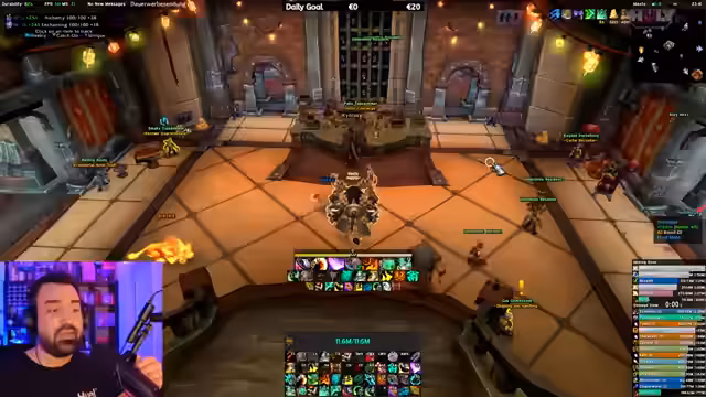 02:11:21Er erklärt, warum im Stream 2.26 Uhr angezeigt wird, nämlich weil er beim Einstellen des Donation Goals versehentlich ein Jahr nach vorne gestellt hat. Er spricht über Weak Auras und Buff Tracking, betont, dass es nicht immer aussagekräftig ist, wenn der Speicherverbrauch nach oben schießt. Er klärt auf, dass die Data Panels oben im UI von 11 UI stammen und bedankt sich bei Zuschauern für Subs und Unterstützung. Er geht kurz auf die Frage ein, ob er Türke sei, und stellt klar, dass er Deutscher mit türkischem Migrationshintergrund ist. Dann kündigt er an, kurz einen Kaffee zu machen und eine Gruppe für einen Dungeon zu öffnen, und fordert die Zuschauer zur Anmeldung auf. Er erklärt, dass permanente niedrige FPS weniger schlimm sind als sporadische Ruckler, aber er keine Ferndiagnosen geben wird, da die Ursachen vielfältig sein können. Er freut sich über Zuschauer, die ihre FPS verbessert haben. Er lädt Zuschauer in die Gruppe ein und bittet Community-Mitglieder, sich mit einer Notiz anzumelden.
