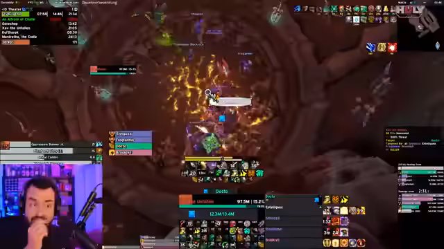 05:51:11Es werden Tipps zum Tanken gegeben, insbesondere für den Bosskampf, bei dem der Tank während der Rum-Charge bereits an der gewünschten Position stehen kann, um den Boss zu sich kommen zu lassen. Es wird erwähnt, dass der HCM (Heroic Difficulty Modifier) in dieser ID gefallen ist. Es wird angedeutet, dass mit Wild Charge eine Abkürzung genommen werden kann. Es wird über den Struggle eines Spielers mit seinem Disty gesprochen und wie durch die Besprechung im Stream seine Leistung gesteigert werden konnte. Es wird die Frage aufgeworfen, ob Spinning Crane Kick wieder im Mistweaver-Meta ist, oder ob Single-Target-Fistweaver weiterhin die bevorzugte Wahl ist.