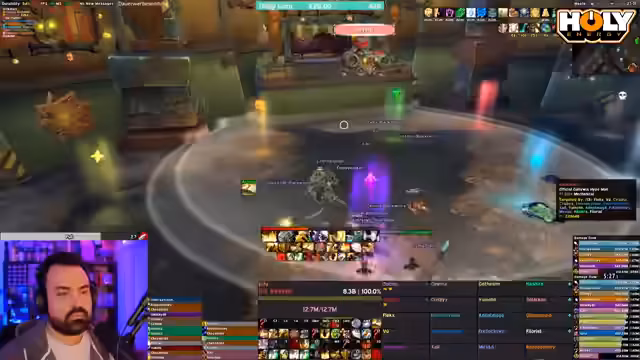 Doctorio leitet einen HC Raid in World of Warcraft, wobei der Fokus auf dem Templar-Paladin liegt. Es werden Taktiken besprochen, Klassenanpassungen vorgenommen und WeakAuras optimiert. Die Damage-Verteilung wird analysiert und mit Top-Spielern verglichen. Nach dem Bosskampf erfolgt die Lootverteilung und es werden Pläne für zukünftige Mythic-Raids geschmiedet.