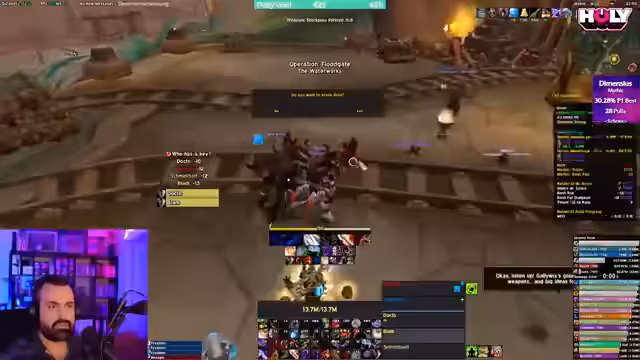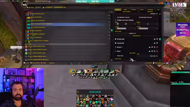 00:30:05Es wurden kleinere Updates an der Distro Warlock WeakAura vorgenommen, einschließlich Conflict Great Roaring Blaze und Glow-Effekte für Anfänger. Für den heutigen Abend sind Raids mit Warlock, Mage, Rogue und Monk Tank geplant, wobei zunächst Dungeons gespielt werden sollen. Es wird ein Monk Tank auf Stufe 8 gebracht und mit Zuschauern Keys gespielt. Der Streamer erklärt die Funktionsweise der neuen Glows, die er eingebaut hat, um Spielern zu helfen, ihre Fähigkeiten in der richtigen Reihenfolge zu nutzen. Er geht auf Fragen zu den Glows ein und erklärt, dass diese auf der Prioritätenliste (APL) der Fähigkeiten basieren und dass es wichtig ist, die Klasse zu verstehen, um die Glows richtig zu interpretieren. Er erklärt, dass die Weak Aura nicht die Klasse beibringen kann, sondern nur ein Hilfsmittel ist, um die richtige Reihenfolge der Fähigkeiten zu erkennen.
