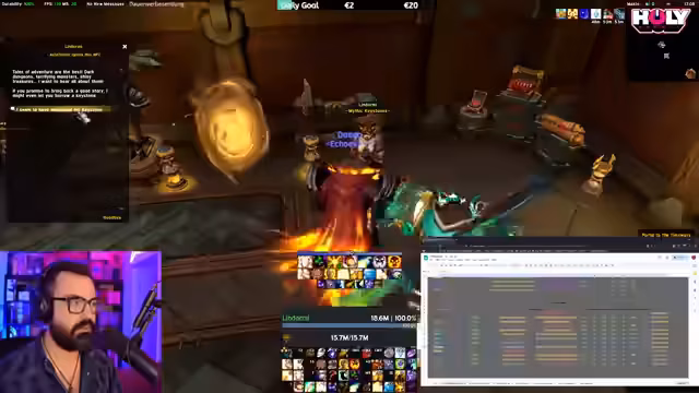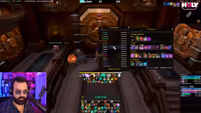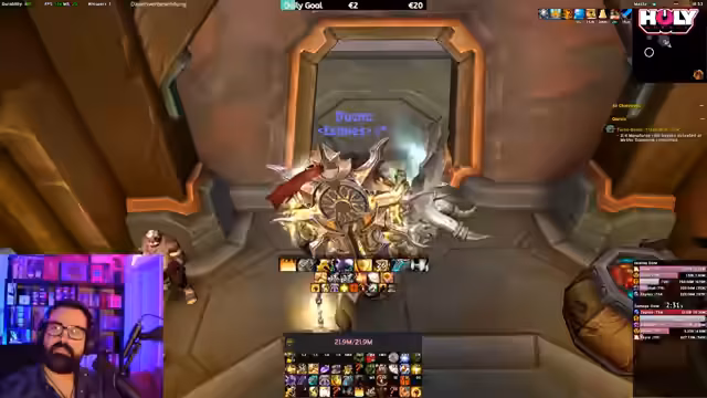 11:59:26Der Streamer kündigt einen 12er-Key-Dungeon an, den er als Tank ohne Interface spielen wird. Die Zuschauer dürfen den Tank-Spezies auswählen (außer Monk, da bereits gespielt), und alle UI-Elemente wie Namensplaketten, Weak Auras oder Schadenszahlen sind deaktiviert. Er spielt rein nach Muskelgedächtnis, was zu chaotischen Momenten führt, während er mit den Zuschauern interagiert und deren Chat-Reaktionen einbezieht. Dies dient als humorvolles Abschlusssegment.
