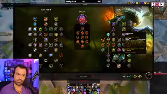 06:17:25Es werden die aktuellen Änderungen an der Unholy-Tank-Spezialisierung des Death Knights durchgegangen. Wichtige Fähigkeiten wie 'Apocalypse' und 'Dark Transformation' wurden überarbeitet, was zu weniger 'Button Bloat' führt. 'Apocalypse' ersetzt nun 'Dark Transformation' und 'Abomination's Might' wird durch einen Race-Skill ersetzt. Dies führt insgesamt zu weniger Tasten, die man aktivieren muss. Der Streamer zeigt, wie man die Skillung im Interface anpassen kann, um diese Änderungen zu spiegeln und die Benutzeroberfläche aufzuräumen.