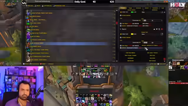 13:17:29Der Streamer vertieft sich in die Feinabstimmung seiner WeakAuras für den Shadow Priest. Er identifiziert spezifische Änderungen, die vorgenommen werden müssen, wie bei 'Void Volley' und 'Mind Flay'. Er stellt fest, dass einige Auras, wie die für 'Mind Blast' und 'Shadow Word: Pain', aufgrund von Änderungen an der Spielmechanik angepasst werden müssen. Außerdem befasst er sich mit dem Secret-Talent 'Devar Meta' und einer passenden Aura dafür, um deren Schildbruch-Funktion deutlich zu machen. Er erwähnt, dass er einen Icon-Change in Erwägung zieht, um die Aura noch intuitiver zu gestalten.
