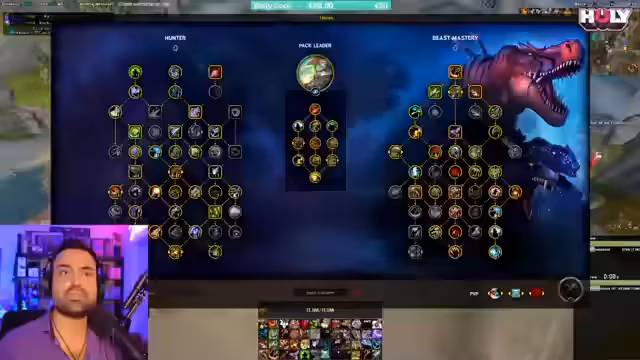 07:10:34Der Streamer wechselt zum Beastmaster Hunter und stellt die ersten Änderungen im Interface für diese Spezialisation vor. Er bemerkt, dass einige Fähigkeiten wie 'Murder of Crows' entfernt wurden, was in der initialen Auflistung der Änderungen noch nicht erfasst war. Der Hunter hat im aktuellen Patch eine sehr gute Single-Target-Damage und eignet sich gut für Bosskämpfe, in denen man den Boss ausweichen muss. Er stellt auch fest, dass die Spezialisation insgesamt nur um drei Prozent an Schaden verloren hat und betont, dass kleine prozentuale Änderungen im Vergleich zur Spielstärke nebensächlich sind.