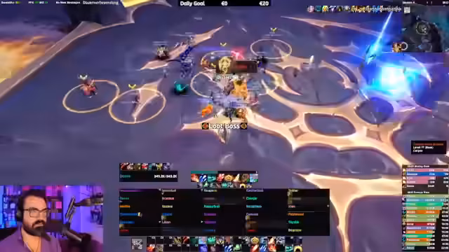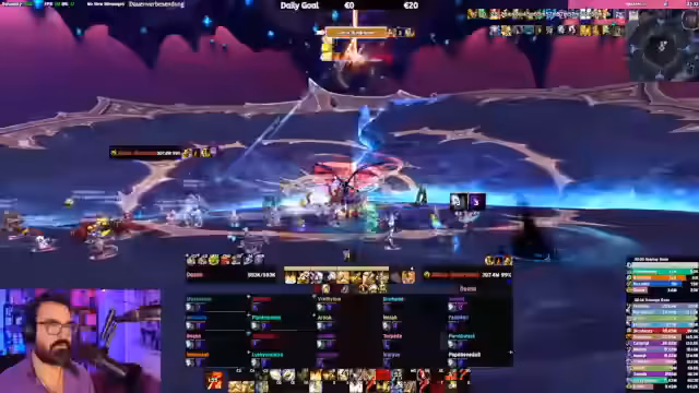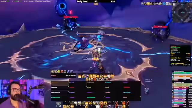 09:02:25Der Streamer reagiert auf einen Hinweis im Chat über einen möglichen Exploit im aktuellen Raid-Boss. Er gibt zu, den Exploit noch nicht getestet zu haben und will die Funktionsweise in seinem nächsten Versuch überprüfen. Gleichzeitig debuggt er sein Interface-Profil, da bestimmte Funktionen, wie das Zählen von Debuffs über den 'Drop'-Status, nicht korrekt angezeigt werden und eine Neuinstallation der Addons als Lösung vorgeschlagen wird.