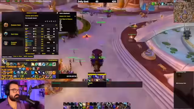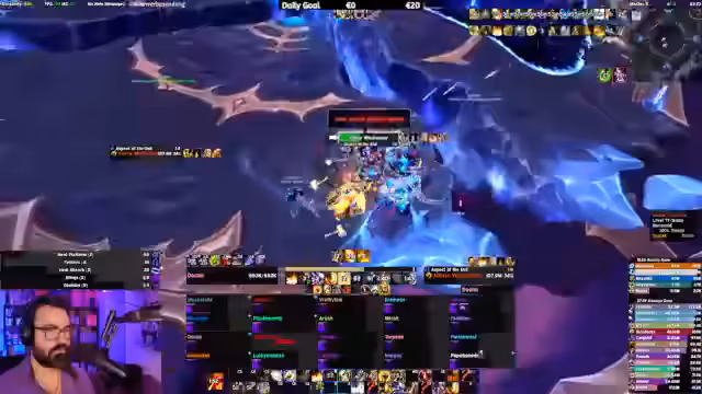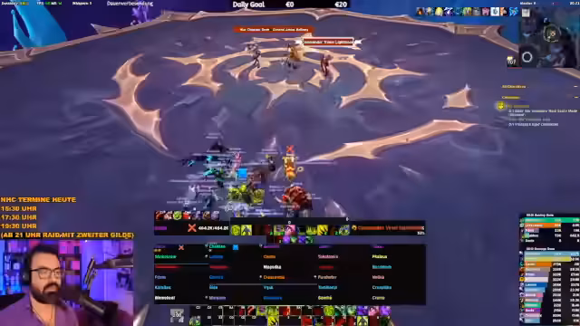 07:10:07Ein Teilnehmer im Chat berichtet von einer speziellen World Quest, die 15 Minuten lang im Bereich eines Kreises verbracht werden muss, um abgeschlossen zu werden. Der Streamer empfiehlt jedoch dringend, diese Quest zu ignorieren, da der Zeitaufwand im Verhältnis zum minimalen Belohnungswert nicht gerechtfertigt sei und es zudem zu Bugs kommen kann. Gleichzeitig wird der Fokus wieder auf den Raid zurückverlagert, wo der Streamer weiterhin versucht, die Mechaniken zu erklären und die Performance des Teams zu verbessern.