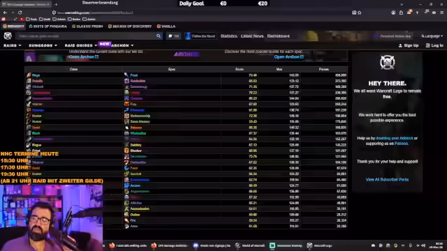 09:20:15Ein Zuschauer fragt nach technischen Lösungen für In-Game-Anzeigen wie Seelenfragmente. Der Streamer empfiehlt das Addon 'BCDM' (Beta Cooldown Manager) und bietet sein eigenes Profil dafür an. Er verweist darauf, dass man dieses Profil importieren kann. Des Weiteren geht er auf Fragen zum Upgraden von Ausrüstung mit Hero Crests ein und gibt den Rat, diese sofort zu verwenden, sobald der Wert 66 erreicht wird. Er stellt auch den Nutzen seiner Homepage vor, wo man Guides und optimale Grafikeinstellungen für World of Warcraft finden kann.