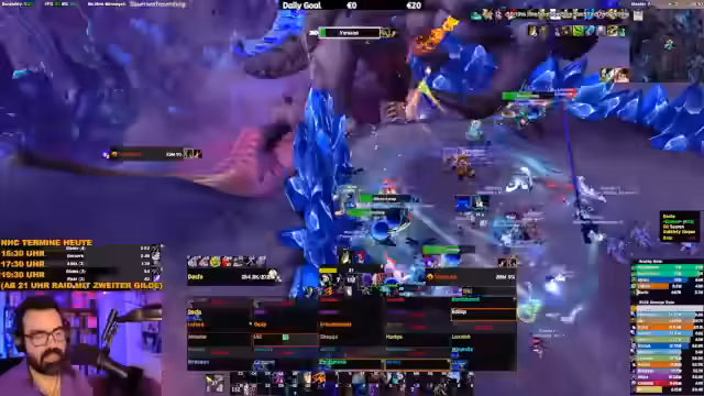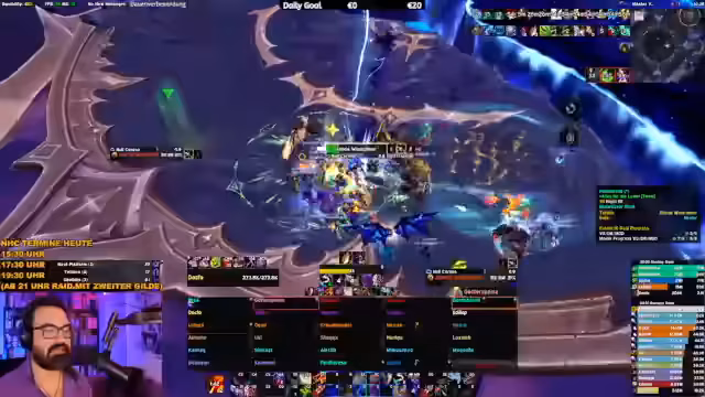 06:14:34Ein kritischer Moment im Raid wird erreicht, als die Heilung vollständig zusammenbricht. Der Streamer stellt fest, dass alle vier Heiler nur die Hälfte ihrer möglichen Heilungsleistung (ca. 50k HPS) erreichen, was zu mehreren Toden führt. Als Konsequenz wird ein Spieler namens 'Fallox' aus dem Raid entfernt, da er angeblich keinerlei Kenntnisse über die Bossmechaniken hat. Der Streamer betont, dass solches Verhalten unhöflich gegenüber den anderen Teammitgliedern sei und fordert alle Teilnehmer auf, die Guides zu studieren, bevor sie sich für zukünftige Raids anmelden.