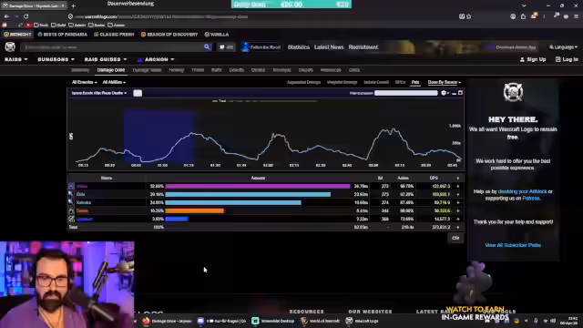 03:13:47Der Streamer bildet eine Gruppe für einen Dungeon und weist Mitglieder darauf hin, dass nur DDs mit ausreichender Leistung mitkommen. Dabei wird die Leistung eines Spielers anhand von Log-Daten bewertet, dessen Schadenszahlen deutlich unter dem erwarteten Standard liegen. Dem Spieler wird angeboten, seine Fehler gemeinsam zu analysieren, um sich zu verbessern. Die Analyse soll einen Mehrwert für alle Zuschauer haben und die eigene Spielweise verbessern.