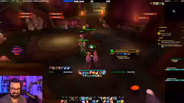 04:13:15Der Stream beginnt mit der detaillierten Analyse des Bosskampfes gegen Alleria. In Phase 1 verursacht Aleria durch das Herabziehen von Himmelskörpern unvermeidbaren Schatten-Schaden. Spieler müssen schwarze Kometen ausweichen, die langsam auf sie herabfallen. Die Intermission ist komplexer und erfordert, dass Spieler einen Schatten-Debuff durch das Treffen von Pfeilen entfernen. Auf HeroicDifficulty muss jeder zweite Pfeil ignoriert werden, um einen tödlichen Debuff zu vermeiden. Die Positionierung ist entscheidend, um sicheren Zonen und Strahlen, die einige Spieler zufällig treffen, auszuweichen.