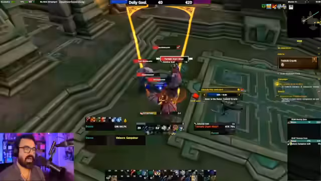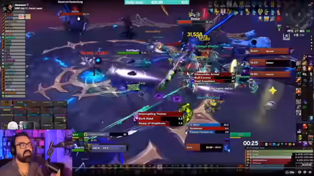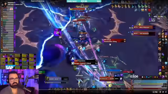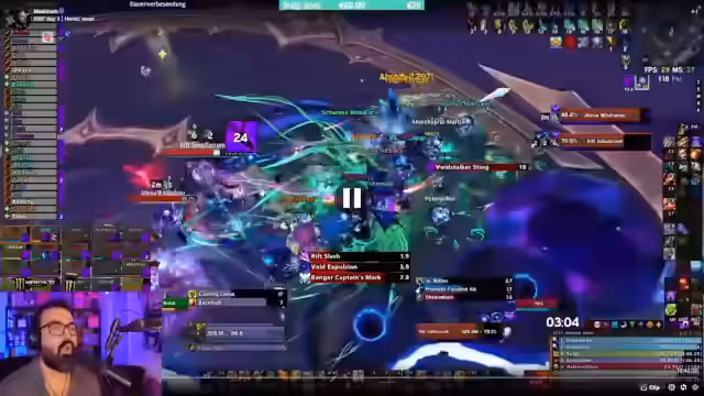 03:40:59Der Streamer erklärt die Mechaniken des Alleria Heroic Raids, insbesondere die Bedeutung der Void Droplets. Diese verursachen einen 'Damage Taken'-Debuff, der das Töten der Champions erforderlich macht. Gleichzeitig besitzen diese Champions ein Immunitätsschild, das nur durch das Abschießen von Pfeilen entfernt werden kann. Die größte Herausforderung besteht darin, die richtige Reihenfolge zu finden, um den Debuff nicht zu früh zu entfernen, bevor der Damage-Buff der Droplets vollständig aufgebaut ist.
