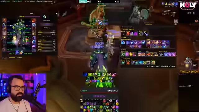 08:12:00Die Gruppe startet einen neuen Key, der jedoch schnell scheitert. Der Streamer gibt für den nächsten Run klare Anweisungen, um die Fehler zu korrigieren. Anschließend beginnt er, den Loot seines Charakters aufzuräumen und wertet seine Ausrüstung auf. Er stellt fest, dass viele Gegenstände überflüssig sind und diese an die Bank geschickt werden. Sein Ziel ist es, die Items mit den höchsten Werten zu behalten, wie die Schultern und Trinkets. Er ist frustriert über sein Glück beim Loot und zeigt, dass seine Ausrüstung noch viele Schwachstellen hat, die gefüllt werden müssen.