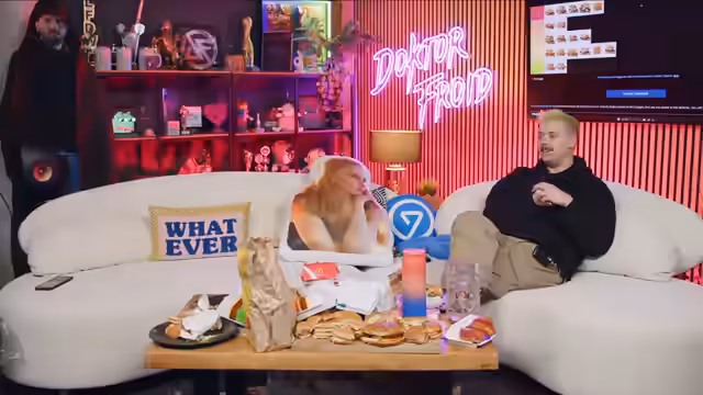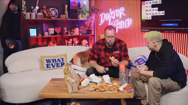 05:24:44Nachdem die technischen Probleme behoben sind, wird das Studio gezeigt und der Geruch von McDonald's-Burgern bemerkt, die offenbar für einen Test verwendet wurden. Es wird über den 'Big Tasty Bacon' gesprochen, der als Favorit hervorgeht, und die Framerate der Kamera wird kurz thematisiert. Die Ankunft von Marco wird erwartet, und es wird scherzhaft über die Verteilung der Burger gesprochen. Der Streamer erwähnt auch, dass sein Hund Hawking, der Probleme mit anderen Hunden hat, während ihrer Abwesenheit kurz freigelassen wurde und sich nicht für die Burger interessiert hat. Ein Double Cheeseburger wird probiert, obwohl er kalt ist.