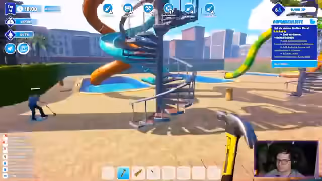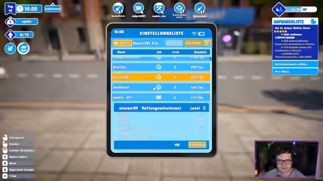 06:39:50Der Streamer konzentriert sich auf das Management seines Wasserparks, wobei er die Einnahmen im Auge behält und versucht, 100.000 Einheiten zu erreichen. Er weist seinen Mitarbeitern, darunter ein Senior, ein Teenager und ein Erwachsener, verschiedene Aufgaben mit oder ohne Rutsche zu, während er selbst die Rolle des Verkäufers von Limonaden, Vanilleeis und Hot Dogs übernimmt. Zwischenzeitlich muss er sich auch um die Sicherheit der Gäste kümmern, da es keinen Rettungsschwimmer gibt und er selbst eingreifen muss, um ertrinkende Personen wie Arabella zu retten. Das Team muss sich auch um betrunkene Gäste und Personen kümmern, die in den Pool pinkeln. Trotz dieser Herausforderungen werden die Ticketpreise erhöht und zusätzliche Ticketautomaten installiert, um die Einnahmen zu maximieren. Die Mitarbeiter, darunter Sophie und Iconic Woodworker, machen Mittagspause, was die Situation zusätzlich erschwert und den Streamer dazu zwingt, noch wachsamer zu sein.