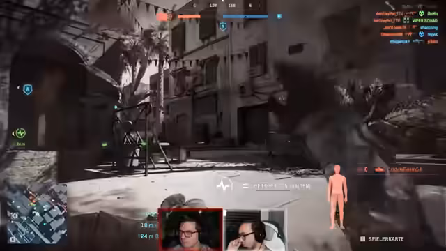 07:43:40Das Team setzt die intensiven Kämpfe in Battlefield fort, wobei sie sich auf einer Sniper-lastigen Map befinden. Die Spieler versuchen, die verschiedenen Einsatzziele wie D und C einzunehmen und zu verteidigen. Es kommt zu vielen schnellen Toden durch Sniper und Panzer, was die Koordination erschwert. Der Streamer und seine Teamkollegen Mike und Domo versuchen, sich gegenseitig wiederzubeleben und strategisch vorzugehen, um die Gegner zu überwinden. Trotz der Schwierigkeiten und der Überzahl an Gegnern, die aus allen Ecken kommen, bleibt die Motivation hoch. Es gibt Momente der Frustration, wenn Teammitglieder nicht wiederbeleben oder man in ungünstige Situationen gerät. Die Runde ist geprägt von hektischen Gefechten, dem Einsatz von Granaten und dem Versuch, die Kontrolle über die Karte zu erlangen. Am Ende der Runde wird die Leistung des Teams analysiert, und es wird festgestellt, dass die Punktverteilung entscheidend war, auch wenn die individuellen Kills nicht immer hoch waren.