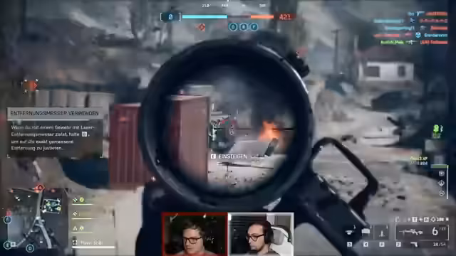 10:00:07Die Streamer teilen persönliche Anekdoten und Erfahrungen, wie eine Geschichte über das Helfen einer Freundin, die in einer Reihe von unglücklichen Ereignissen endete. Es wird auch über das kürzliche McDonald's XXL-Testessen gesprochen, das zu unangenehmen Folgen führte und die Spieler vorerst von Fast Food abschreckt. Die Interaktion mit dem Chat bleibt lebendig, während die Zuschauer ihre eigenen Geschichten teilen und Fragen stellen. Die Spieler kehren zum Battlefield-Gameplay zurück und setzen ihre Suche nach der idealen Klasse und Strategie fort. Die Herausforderungen im Spiel bleiben bestehen, aber die Streamer sind entschlossen, ihre Fähigkeiten zu verbessern und die Gefechte zu meistern. Die Kombination aus unterhaltsamen Geschichten und intensivem Gameplay schafft eine dynamische und ansprechende Atmosphäre für die Zuschauer, die weiterhin aktiv am Geschehen teilnehmen und die Streamer unterstützen.