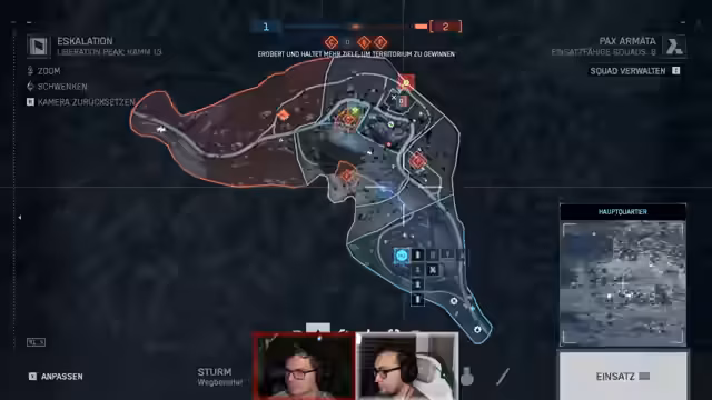10:07:44Der Streamer entscheidet sich, in den Eroberungsmodus zu wechseln, nachdem zuvor Eskalation und Durchbruch gespielt wurden. Es ist das erste Mal, dass dieser Modus im Stream gespielt wird. Die zugewiesene Karte "Paul" wird als ideal für Sniper beschrieben, wobei der Fokus auf dem Spielen von Zielen und weniger auf der persönlichen K/D-Ratio liegen soll, um dem Team zu helfen. Der Einstieg erfolgt in einem Panzer, und die Spieler bewegen sich auf das Ziel C zu, welches als Hotspot für die meisten Aktionen identifiziert wird. Schnell kommt es zu ersten Wiederbelebungen von Teammitgliedern und intensiven Gefechten, bei denen Jets und feindliche Hubschrauber eine Rolle spielen. Die Dynamik des Spiels erfordert ständige Positionswechsel und die Zusammenarbeit im Team, um die verschiedenen Punkte auf der Karte zu halten oder zurückzuerobern.