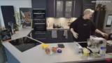 02:25:27Nach dem ausführlichen ESC-Thema wechselt der Stream das Thema und geht in die Küche. Das Ziel ist, Berliner Pfannkuchen zu backen. Nach einer kurzen Verzögerung aufgrund eines falschen Kamerawinkels, ist der Streamer am Arbeitsplatz angekommen. Er begrüßt die Zuschauer und stellt die Küchenmaschine sowie das Rezept vor, um den Prozess zu vereinfachen und gleichzeitig einen zukünftigen YouTube-Clip zu erstellen.