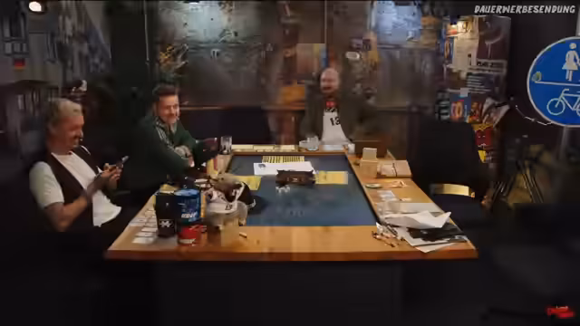 03:10:24In einem riskanten Manöver versucht die Gruppe, der Verfolgung zu entkommen. Borg nutzt einen Handstrahler, um den Fahrer des BMWs zu blenden, was diesem zwei Nachteile einbringt. Parallel dazu schmeißt Peter eine improvisierte Wodkaflasche auf die Motorhaube. Kevin, von der Gruppe als helfend auserkoren, fährt eine riskante Driftkurve, um parallel zum Gegner zu gelangen. Nachdem er eine Herausforderung mit 41 Würfel-Punkten meistert und ein Fahrzeugopfer einbringt, gelingt ihm der Manöver. Er kann mit seiner Pistole auf das Seitenfenster des Verfolgers schießen und dieses zerstören, bevor der Wagen scharf abbremsen muss.