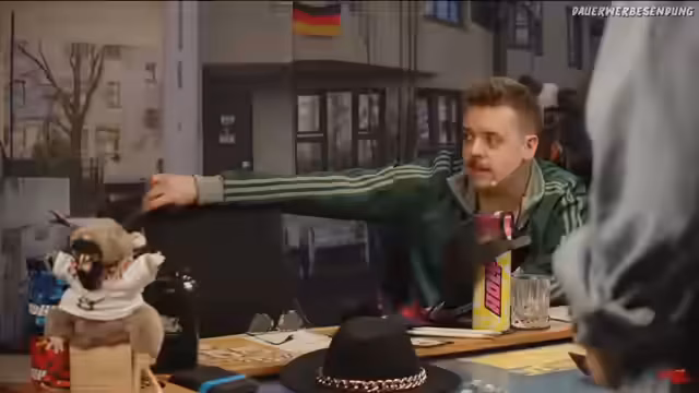 00:21:09Der Stream beginnt unter dem Titel 'KRAWALL IM KIEZ !hyperx'. Der Streamer begrüßt das vollzählige Team und das Publikum und wiederholt den Titel des Rollenspiels. Er erwähnt den neuen Emote 'Lord Payne', den er als sehr intensiv beschreibt, und begrüßt neue Chatter. Volpi, die 'Volper-Ratte', ist ebenfalls im Studio und sitzt bei den Sponsoren. Der Streamer betont die Unterstützung des Projekts über Crowdfunding, den Kauf von Merchandise und den Versand von Fanart auf der Plattform Rollenspiel.stream.