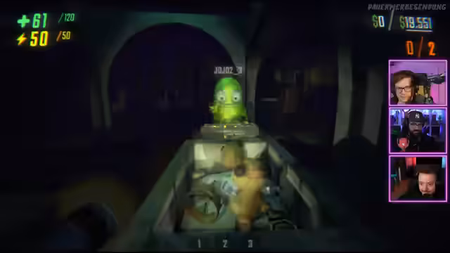 04:08:42Der Fokus liegt auf der Kooperation und der Handhabung der Spielmechaniken. Gegenstände müssen oft zu zweit mit dem Traktorstrahl bewegt werden, um sie nicht zu beschädigen. Das Team muss auf Monster achten, vor denen man sich verstecken kann. Beim Transport eines wertvollen Gegenstands blockieren sie versehentlich den Fluchtweg, was den Tod eines Teammitglieds zur Folge hat. Dieses kann jedoch an einer Wiederbelebungsstation wieder ins Spiel gebracht werden. Jeder Dollar zählt, da das Team eine feste Summe erreichen muss, um zur nächsten Stufe zu gelangen.