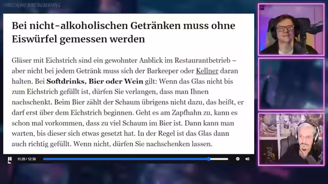 01:59:26Der Stream vergleicht deutsche und amerikanische Lebensgewohnheiten und kontrastiert sie humoristisch. Themen sind der Umgang mit Wäsche, wo in Deutschland Wäschestände als Standard gelten, während in den USA Trockner üblich sind. Des Weiteren wird der Hausbau und die Baustandards thematisiert, wobei deutsche Häuser als robuster gelten. Besonders ausführlich wird das Kulturgut 'Lüften' besprochen, das bei Amerikanern als unbekannt und seltsam empfunden wird, da sie auf klimatisierte Systeme angewiesen sind, während dies in Deutschland ein fester Bestandteil des Alltags ist.