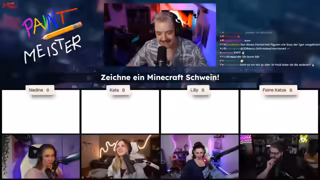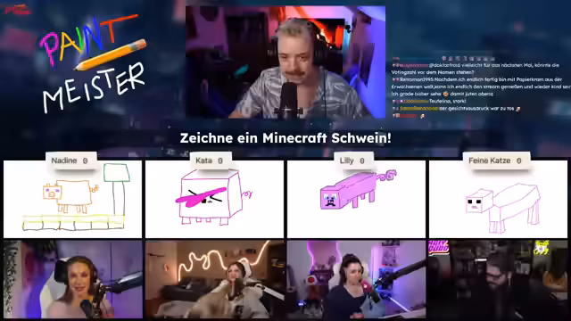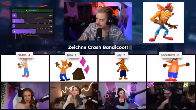 01:05:29Nach einem humorvollen Disput über die Physik eines Minecraft-Schweins startet ein Zeichenwettbewerb, bei dem die Teilnehmer eine ganze Spielwelt mit einem Schwein zeichnen sollen. Nach der Auswertung kommt es zu einem Unentschieden zwischen Nadine und Lilli, was den Streamer auf die Idee bringt, für die fünfte Runde eine spezielle 'Ugly-Runde' einzuführen, in der das hässlichste Kunstwerk gewinnen soll. Parallel wird ein weiteres Zeichenmotiv angekündigt: der Videospiel-Charakter Crash Bandicoot, für dessen Aussehen Paul im Stream eine detaillierte Beschreibung gibt, um allen Teilnehmern eine klare Vorlage zu geben.