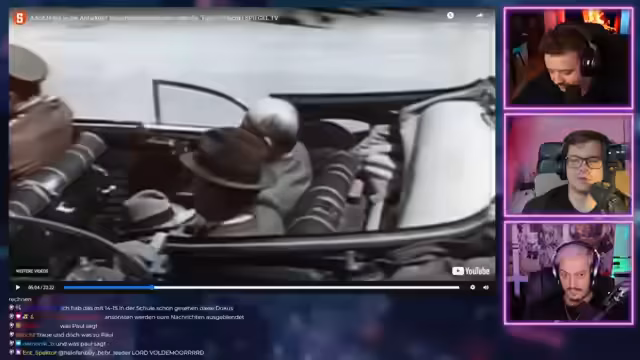02:40:09Nach dem Ende der Dokumentation wird der Stream mit humorvollen Anekdoten und absurden Internet-Videos fortgesetzt, darunter eine Geschichte über Putin als möglichen Sohn Hitlers. Anschließend werden verschiedene Clips gezeigt, wie eine Notlandung eines Flugzeugs, Chaos auf einer Baustelle und ein Roboter-Kampf. Der Stream endet schließlich mit einem Raid auf den Streamer 'Asta', dem ein baldiges Wiedersehen versprochen wird.