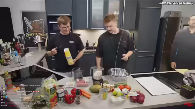 00:14:59Der Stream startet mit einer Begrüßung der Zuschauer und einer Entschuldigung für die Verzögerung, die durch Vorbereitungen für Montag entstanden ist. Es folgt die Vorstellung des heutigen Copy & Taste Translator-Kochens. Es wird auf die Interaktion mit dem Chat eingegangen, wobei verschiedene Zuschauer namentlich begrüßt werden. Die Streamer thematisieren den Unterschied zwischen ihrer normalen Sprechweise und der, die sie vor der Kamera anwenden, und diskutieren Dialekte. Olli kündigt seinen Sabaton ab dem 22. an, während Paul Tipps dafür von Schlo einholt und eine Toast-Challenge absolviert, bei der er versucht, ein Toastbrot in möglichst kurzer Zeit zu essen. Diese Challenge dient als kurzer, unterhaltsamer Einschub, bevor es mit dem eigentlichen Translator-Kochen losgeht. Es wird eine Partnerschaft mit Mammut bzw. Best Buddy erwähnt, die Produkte für Nutrition anbieten.