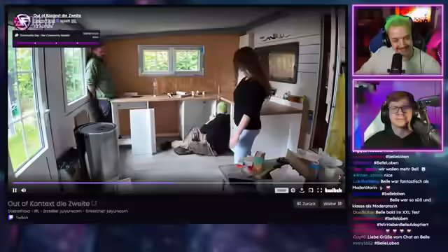 01:27:24Ein Clip zeigt Toki, der sich meldet, und den Kameramann, der als 'strong' bezeichnet wird. Es wird ein technischer Tipp gegeben, wie man ein iPhone über USB-C mit Tethering als Hotspot nutzen kann, um eine priorisierte Kabelverbindung herzustellen. Es wird humorvoll angemerkt, dass der Streamer in solchen Momenten oft abgelenkt ist. Die Streamer zeigen eine Küchenbegehung aus der POV, bei der die Details der neu gebauten Küche präsentiert werden, darunter der Überstand für Handtücher, die schön gebauten Schranktüren und Schubladen sowie der Platz für den Kühlschrank. Es wird auch ein Blick unter die Küche gewährt, um die perfekte Ausbildung zu zeigen. Ein Clip zeigt einen Streamer, der seinen Bauch als 'Bauchbesen' bezeichnet. Es wird ein Clip von Trimax gezeigt, der Rumatra tätowiert hat. Es wird ein Test durchgeführt, um zu sehen, ob die Zuschauerzahlen steigen, wenn alle inaktiven Zuschauer kurz etwas in den Chat schreiben. Die Zuschauerzahlen steigen daraufhin um 30.