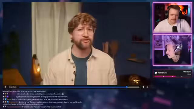 00:38:22Der Stream schlägt in politische Inhalte um. Es wird die Zusammenfassung von Trumps ersten 100 Tagen analysiert. Kritikpunkte sind die unkonventionelle Kabinettsbesetzung mit 19 TV-Hosts, die Verwicklung von Elon Musk und der Kauf von Doge. Die wirtschaftlichen Maßnahmen, insbesondere die sehr hohen und verwirrenden Strafzölle, werden als kontraproduktiv für die Weltwirtschaft bezeichnet. Als Quellen für die Wirtschaftspläne wird ein erfundener Professor namens Ron Vahra entlarvt, was die Inkompetenz unterstreicht.