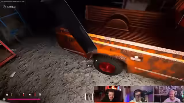 01:20:39Bei weiteren Suchaktionen in der Spielwelt entdeckt der Streamer seltsame Geräusche und unklare Objekte, deren Zweck ihm zunächst nicht bekannt ist. Sein Hauptziel bleibt der Umbau des Fahrzeugs. Er findet einen Wasserkanister, einen Getränkekasten und weitere Reifen, erkennt aber, dass ihm ein Tank fehlt, ohne den das Auto nicht fähig ist. Ungeachtet dessen beginnt er, das Fahrzeug mit einer Diskokugel, einem Subwoofer und einer Schildkröte als Heckfigur zu individualisieren und eine "Let's Game It Out"-Ästhetik zu schaffen.