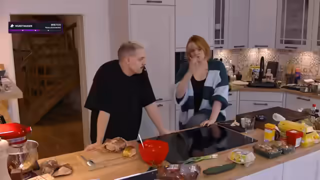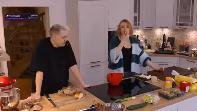 00:31:10Der Streamer geht in die Küche, um Frühstück zuzubereiten. Dabei kommt es zu einem leicht geknickten, aber humorvollen Dialog mit dem Co-Moderator, der plötzlich sehr aktiv ist und als 'Küchendiktator' agiert. Eine Frage im Chat, ob ein bestimmtes Küchenutensil grün ist, wird als 'Avocado-grün' oder 'Guacamole-grün' beschrieben und damit geklärt.