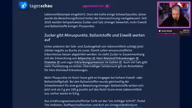 02:17:33Der Nutri-Score, als Verbraucherinformationsinstrument, wird als problematisch kritisiert, da er nur Lebensmittel innerhalb einer Produktkategorie vergleicht und nicht eine absolute Aussage über die Gesundheit eines Produkts trifft. So kann ein Produkt wie Chips den besten Score (A) erhalten, bleibt aber per Definition ungesund. Trotzdem wird die Überarbeitung des Nutri-Scores im Jahr 2026 thematisiert, bei der Zucker und Salz strenger bewertet und Ballaststoffe sowie Proteine stärker gewichtet werden. Die Kritik bleibt bestehen, da grundlegende Mängel wie die Freiwilligkeit der Kennzeichnung und die fehlende Berücksichtigung des Verarbeitungsgrades bestehen bleiben.