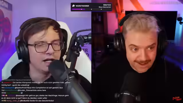 01:35:07Der Stream startet eine große Community-Aktion: das Sammeln von Abonnenten für einen XXL-Wurstwassertest. Das Ziel sind 1492 neue Abonnenten, die die Live-Umsetzung der Challenge am 26. Februar auslösen würden. Die Community reagiert enthusiastisch und spendet viele Subs und verschenkte Abonnements. Es kommt zu einem regelrechten Hypetrain im Chat. Der Streamer ist überwältigt von der Unterstützung und macht sich gleichzeitig Sorgen, ob das Ziel überhaupt noch erreicht werden kann. Er fängt an, sich auf die schmerzhafte Erfahrung des Wurstwassertests vorzubereiten und warnt vor möglichen, unangenehmen Nebenwirkungen.