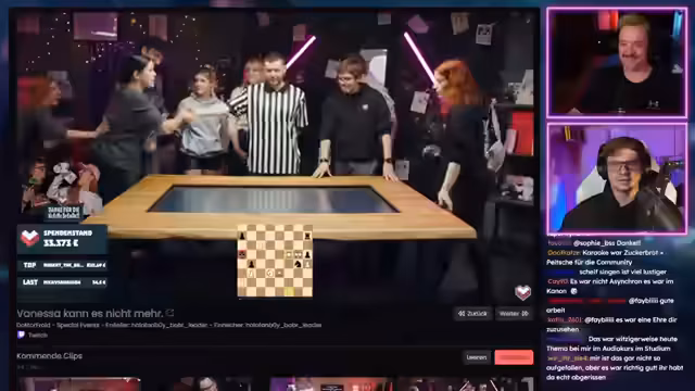 01:16:24Es wird eine Erklärung zur aktuellen Situation mit Flo gegeben: Seit fast einem halben Jahr gab es kein persönliches Treffen oder Gespräch, da Flo mehrfach vereinbarte Termine nicht eingehalten oder sich verspätet gemeldet hat. Die Bedingung für eine erneute gemeinsame Kamera-Präsenz war ein klärendes Gespräch, das jedoch nie stattfand, auch nicht auf Events wie der Gamescom oder Polaris. Dies führt zu Verwunderung über jüngste öffentliche Äußerungen von Flo, die teilweise Falschaussagen und Lügen enthielten. Es wird jedoch keine weitere detaillierte Debatte gewünscht, um die gute Stimmung nicht zu beeinträchtigen. Anschließend wird der Übergang zu den 'Stream Awards' und der 'Clip Queue' gemacht, wobei die Clips bevorzugt werden. Es werden technische Schwierigkeiten bei der Synchronisation von Audio, Video und Text bei einem Gesangs-Programmpunkt angesprochen, die zu Asynchronitäten führten. Auch ein spontan eingeführtes digitales Schachbrett sorgte für Herausforderungen, da es keine regelwidrigen Züge zuließ, was die ursprünglich geplanten Strategien der Teilnehmer durchkreuzte. Für zukünftige Events wird überlegt, ein 'Best of Five' im Schach zu spielen oder den 'Tabletop Simulator' zu nutzen, wobei auch hier potenzielle Risiken wie das 'Flippen des Tisches' bedacht werden müssen. Die Idee, Influencer als Schachfiguren in einem 'Menschenschach' einzusetzen, wird als spannendes und potenziell eigenes Event diskutiert, das jedoch eine aufwendige Planung und möglicherweise externe Finanzierung erfordern würde.
