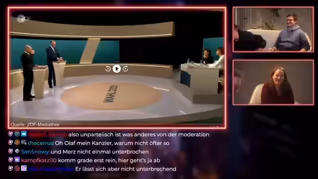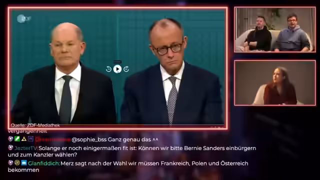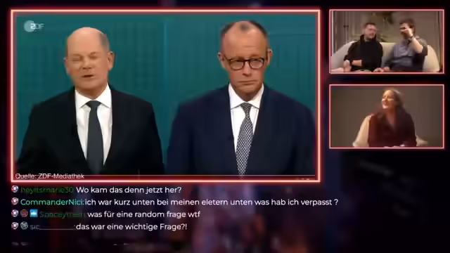 00:15:20Die Wichtigkeit der Präsenz von Politik in jungen Medien wird hervorgehoben, um junge Leute zu erreichen und ihnen die Möglichkeit zu geben, sich eine eigene Meinung zu bilden. Es wird kritisiert, dass die Politik Twitch und TikTok lange Zeit paternalistisch betrachtet hat und die Bedeutung dieser Plattformen für die Meinungsbildung unterschätzt hat. Nach einer kurzen technischen Unterbrechung wird in das TV-Duell zwischen Friedrich Merz und Olaf Scholz reingehört. Die ersten Eindrücke sind eher steif und wenig lebendig. Es wird kritisiert, dass Friedrich Merz sein Wort gebrochen hat, indem er mit der AfD abgestimmt hat, und dass man sich daher nicht mehr auf seine Aussagen verlassen kann. Es wird die Sorge geäußert, dass eine schwarz-gelbe Minderheitsregierung von der AfD toleriert werden könnte.