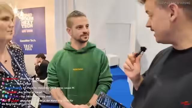00:13:42Der Stream beginnt mit der Ankunft des Streamers an der IFA. Er erwähnt, dass er sich mit Olli und Chang, dem Chef der Vienna Comic Con, auf den Weg zum Stand von Webedia 5.2 macht. Der Streamer führt sein Publikum durch die teilweise noch leere Messehalle, zeigt seine Polaris-Jacke und klärt die Bedeutung von IFA als Internationale Funkausstellung. Er identifiziert sich als Teil von Team Twitch Deutschland und erwähnt eine Partnerschaft mit Webedia. Der Kameramann, Nils, wird vorgestellt und der Streamer zeigt sein Networking, indem er bekannte Gesichter wie Lisa und Sam im Chat grüßt.