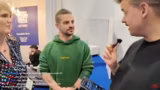 00:18:58Nach einer kurzen Unterhaltung erreicht das Team den Webedia-Stand, auf dem bereits Jakob und Vera live streamen. Der Streamer gibt einen Ausblick auf den restlichen Tagesplan: bis 16 Uhr wird die Messe erkundet und ab 19 Uhr findet ein exklusiver Live-Stream für Samsung statt. Die erste tech-bedingte Beobachtung ist das ultradünne Falthandy, vermutlich das Samsung Galaxy Fold, das als einziges Smartphone als 'echt' im Gegensatz zu AI-gesteuerten Geräten eingestuft wird. Weitere Themen, die bereits angekündigt werden, sind ein Talk über KI in der Musikindustrie mit Krogi und Evil Jared sowie eine Session über 'Tech unterm Radar'.