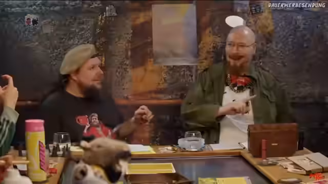 03:23:21Es wird eine Pause eingelegt, die als 'Bio-Break' bezeichnet wird. Nach der Pause beantwortet das Team Fragen zum Projekt, während die anderen essen. Es wird erwähnt, dass Borg einen falschen Bart trägt und dass eine Playlist der Hintergrundmusik von Epidemic am Ende des Projekts auf YouTube zur Verfügung gestellt wird. Bezüglich der Shirts wird erklärt, dass die Produktion erst nach Abschluss der Bestellphase erfolgt, um Rohstoffe und Geld zu sparen. Es wird auf das Crowdfunding für 'Krawall im Kiez' auf rollenspiel.stream hingewiesen und ein exklusives Filmposter von Nadines Charakter verlost. Die Fertigstellung der Boxen kann dauern, da die Qualität im Vordergrund steht. 'It's done when it's done' ist das Motto. Die Livestreams sind eine Kooperation mit den Jungs vom Donnerhaus, die das Produkt entwickeln, während der Stream eine Geschichte basierend auf dem Produkt erzählt.