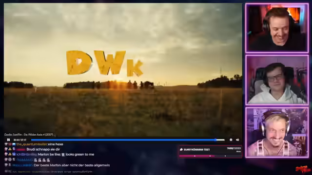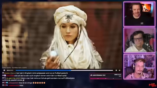 02:02:28Der Stream widmet sich der Filmreihe 'Die wilden Kerle', speziell Teil 4. Der Fokus liegt auf der Vorbereitung der 'wilden Kerle' auf den Freestyle Soccer Contest. Nachdem sie in früheren Filmen immer siegten, müssen sie nun in der Festung der Wölfe von Ragnarök antreten. Der Streamer kommentiert die Charaktere wie Markus und Leon, die nun Motorräder statt Fahrräder fahren, und die Vorbereitungen auf das Turnier.