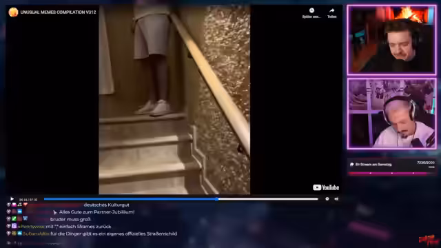 01:18:32Es beginnt mit der Betrachtung von ungewöhnlichen Memes, darunter ein Maschendrahtzaun und ein Alligator, gefolgt von einem Clip über einen Frosch. Es wird eine kreative Unterbrechung angekündigt, um über die besten Namen oder Beschreibungen für Oralsex zu diskutieren, wobei der Streamer einen neuen Favoriten namens 'Gurgelkonzert in Coq Duu' kürt. Einige Clips sind so schnell, dass man sie kaum erfassen kann, aber der Streamer lobt den Soundeffekt eines bestimmten Clips. Ein Clip zeigt jemanden, der offenbar keine Lust mehr hat, und ein anderer wirft Fragen nach frischem Bitumen auf. Es folgt die Frage, wie man einen großen roten Knopf nicht drücken kann, und die Feststellung, dass ein Kanadier über die Grenze geflüchtet ist. Ein Tisch scheint involviert zu sein, was zu einer Reaktion der Überraschung und des Unglaubens führt. Der Streamer äußert sich abfällig über Taubenmester und fragt sich, was vor sich geht, bevor er von einem Soundeffekt überrascht wird, der möglicherweise von einer Dose oder Metallschüssel stammt. Die Diskussion dreht sich um die Frage, ob jemand auf Magic-Turnieren Fotos in einer bestimmten Pose gemacht hat, und die Möglichkeit einer Verstopfung in einem Rohrsystem wird angesprochen, die zu Problemen führen könnte. Der Streamer kommentiert seine Schnürsenkel und vergleicht sie mit dem Zustand der Titanic und fragt sich, ob ein Hagelschutz vorhanden ist.