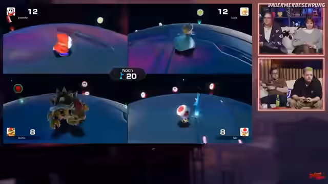 01:48:06Einem der Spieler gelingt es, durch geschickte Item-Nutzung und gutes Würfenglück eine beeindruckende Anzahl an Münzen zu häufen. Die Rivalität spitzt sich zu, als einer der Mitspieler einen Stern erobert und einen anderen Spieler überholt, was zu einer taktischen Situation führt. Die Spieler diskutieren aktiv über ihre nächsten Züge, während sie versuchen, den optimalen Weg zum nächsten Ziel zu finden, was zu spannenden Momenten und gelegentlichen frustrierenden Fehlschlägen führt.