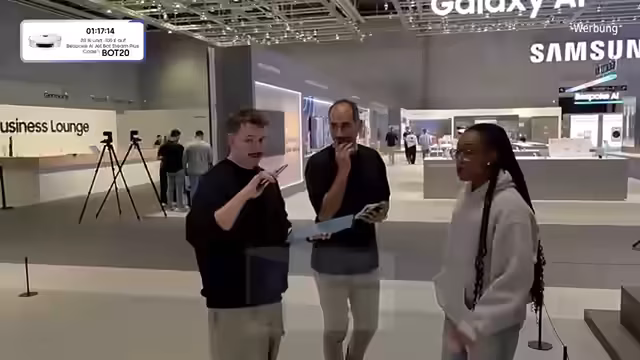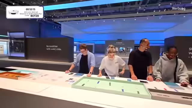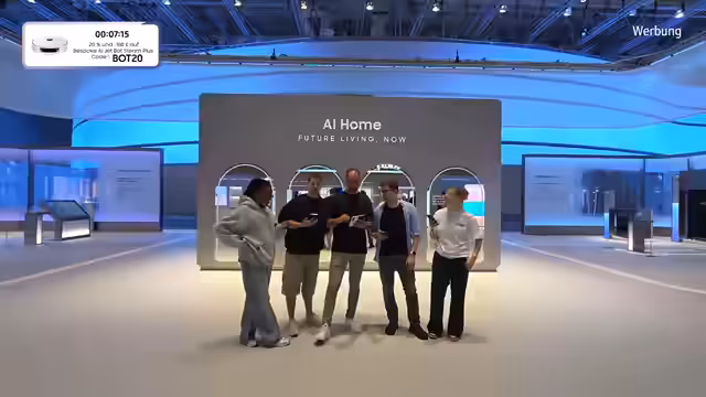 Die IFA 2025 im CityCube steht im Zeichen von Samsung. Teams wie 'Gewinner-Team' und 'Team Dorolli' treten in Challenges rund um KI-Technologien und Smart Home-Lösungen an. Entdecke exklusive Rabattcodes für Galaxy-Produkte, erlebe Innovationen wie Vision AI und SmartThings, und nimm an Gewinnspielen teil. Die Teams erkunden smarte Geräte und deren Integration in den Alltag.