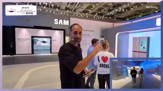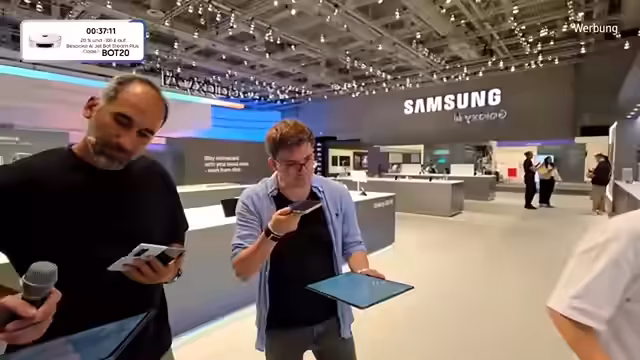 00:00:00Der Stream startet mit der Ankündigung, die IFA-Messe im CityCube, speziell den Samsung-Bereich, zu erkunden. Es werden die Teams vorgestellt: Phoebe und Paul als 'Gewinner-Team', Olli und Dory als 'Team Dorolli'. Es geht um die Begeisterung für Technologie und die Möglichkeiten, die viele Menschen zu Hause haben, aber nicht kennen. Es gibt eine kurze Vorstellung der Streamer Phoebe (19) und Paul (37). Olli und Dory ergänzen das Team. Olli betont seine Erfahrung auf der Fläche, was Team Dorolli einen Vorteil verschafft. Phoebe hebt ihre Stärke in den letzten Streams hervor. Es wird auf die AI Home und das Motto 'Future Living Now' hingewiesen, wobei der Fokus auf der Integration von künstlicher Intelligenz in den Alltag gelegt wird. Es werden coole Codes für generative Bildbearbeitungen und andere Anwendungen versprochen, die exklusiv im Stream verfügbar sind. Der Live-T-Code IFA2025 bietet Rabatte auf Samsung-Produkte, einschließlich der Galaxy S25-Serie und der Z-Serie. Es gibt auch Rabatte auf das Galaxy S25 FE und die Tab S11 Serie, inklusive Slim Cover und Galaxy Buds 3 FE.