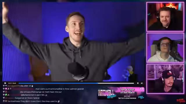 00:25:39Es wird der Verlust des Glaubens an alles aufgrund des Yeezy-Shops thematisiert und die dringende Notwendigkeit von Medikamenten für Kanye West betont. Chrissy wird euphorisch für das Verschenken von 50 Subs gedankt. Es folgen weitere Danksagungen und humorvolle Kommentare. Der Hype Train erreicht Level 16 und es wird auf gutes Timing und einen großen Radio-Auftritt angespielt. Es entsteht eine Diskussion über Rammstein, wobei einer der Streamer zugibt, nur ein Lied der Band zu kennen. Die schwierige Situation, sich heutzutage zu Rammstein zu bekennen, wird angesprochen und die Musik wird trotz der Vorwürfe als geliebt bezeichnet. Shadows of Mucke wird für eine 10er Bombe gedankt. Als nächstes wird "Mu Mäh" von Danny the Delta angemacht, was als bescheuert, aber unterhaltsam beschrieben wird. Es wird festgestellt, dass der Sänger wie Till Lindemann klingt, was jedoch von den Zuschauern verneint wird. Der Song wird als Parodie auf Rammstein und Thiago gelobt.