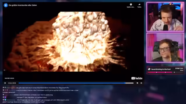 01:51:12Der Streamer reagiert auf ein Video von Simplicissimus über die Zar-Bombe, die stärkste jemals gezündete Kernwaffe. Es werden historische Hintergründe erklärt, wie der Wettlauf der Supermächte USA und Sowjetunion zur Detonation führte. Die enorme Sprengkraft und die globalen Auswirkungen der Explosion werden detailliert besprochen, ebenso die moralische Ambivalenz der beteiligten Wissenschaftler.