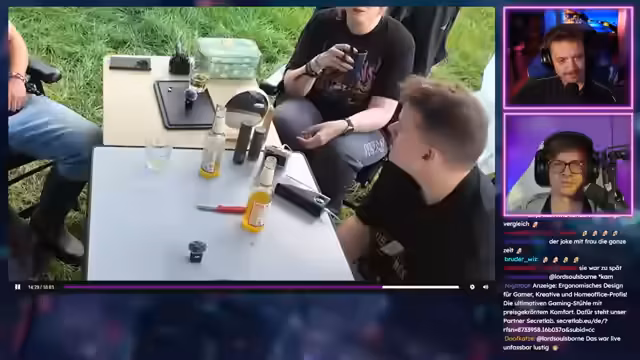 01:14:32Der Stream wechselt zu intensiven Gaming-Momenten, darunter die vollständige Zerstörung eines Spielscharniers durch einen Kronkorken, was als 'World first Luftschacht' gefeiert wird. Zwischendurch fließen persönliche Anekdoten ein, unter anderem eine Geschichte über Scheidenprobleme mit Creme und eine Diskussion über ein vermeintlich verlorenes Kind. Zudem wird ein hypothetischer Stream-Bann aufgrund von Inhalten thematisiert und die Tatsache festgestellt, dass man nackt aussieht.